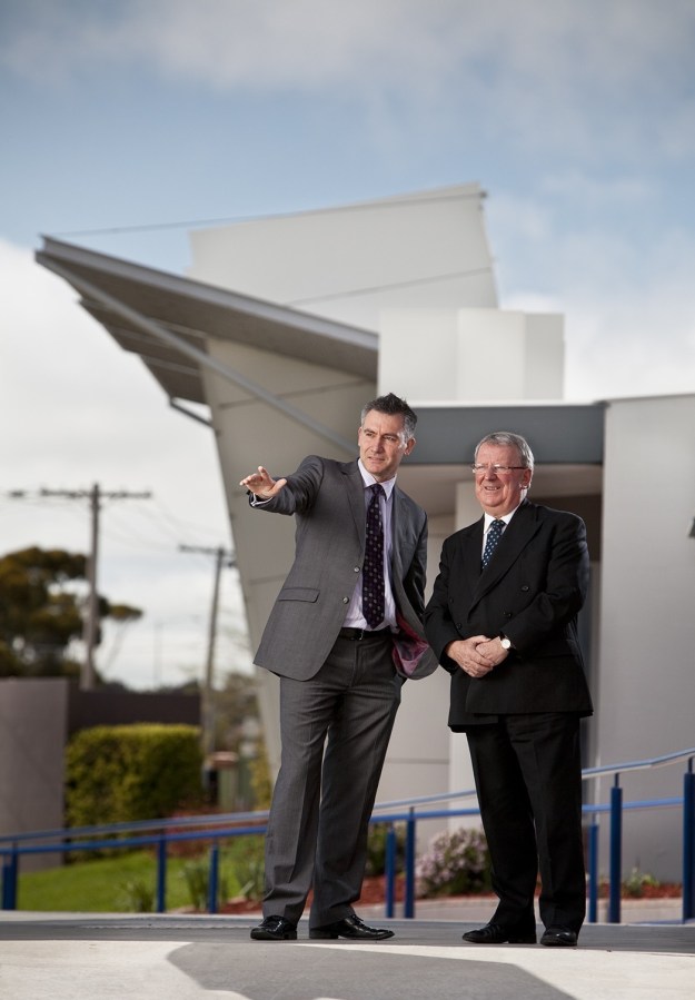 Dean Miller and John Smith discuss the new Medical Centre in Nhill.